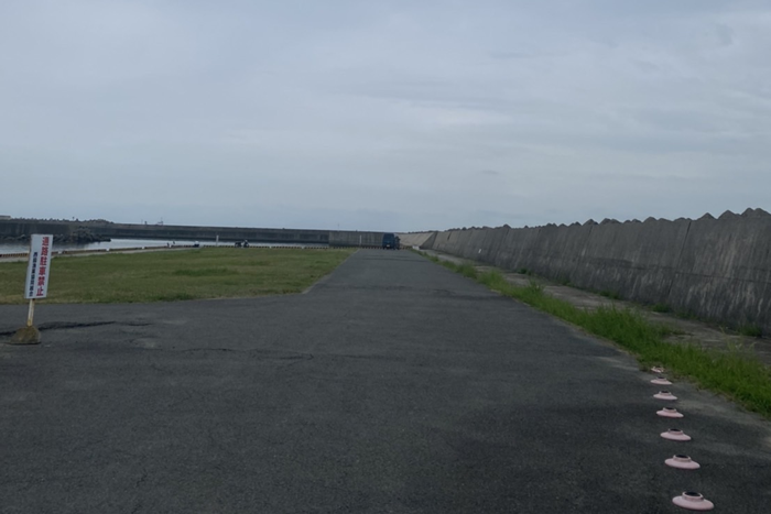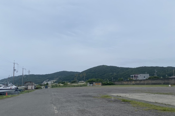 海水浴のお客様が車を止めてる所を通過し、草が生えてる広場まで来ていただき奥にお車を止めて下さい。船は毎朝別の場所からここに持ってきます。